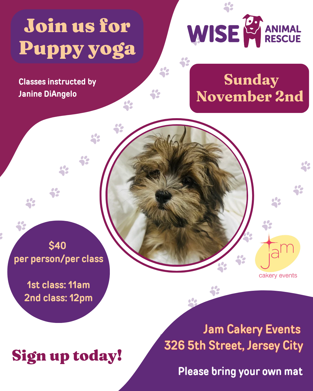 Join us for a special afternoon at Jam Cakery Events in Jersey City, NJ β where adorable rescue puppies and peaceful vibes await!